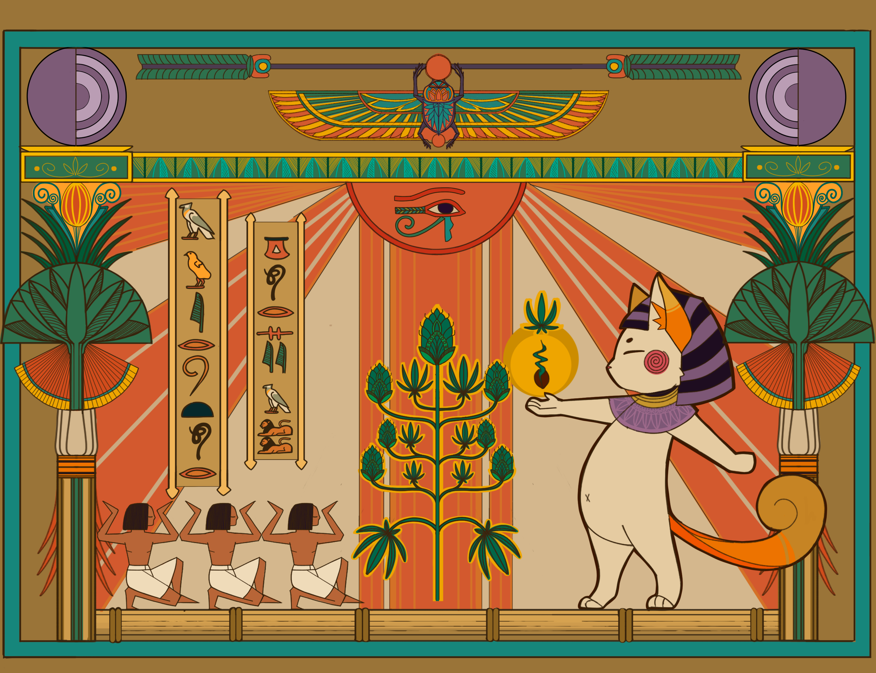 Получилось что-то похожее на гобелен. Место над поклонниками мне показалось пустым, поэтому я добавила короткий шифр из египетских символов значение которого предложил Гор.